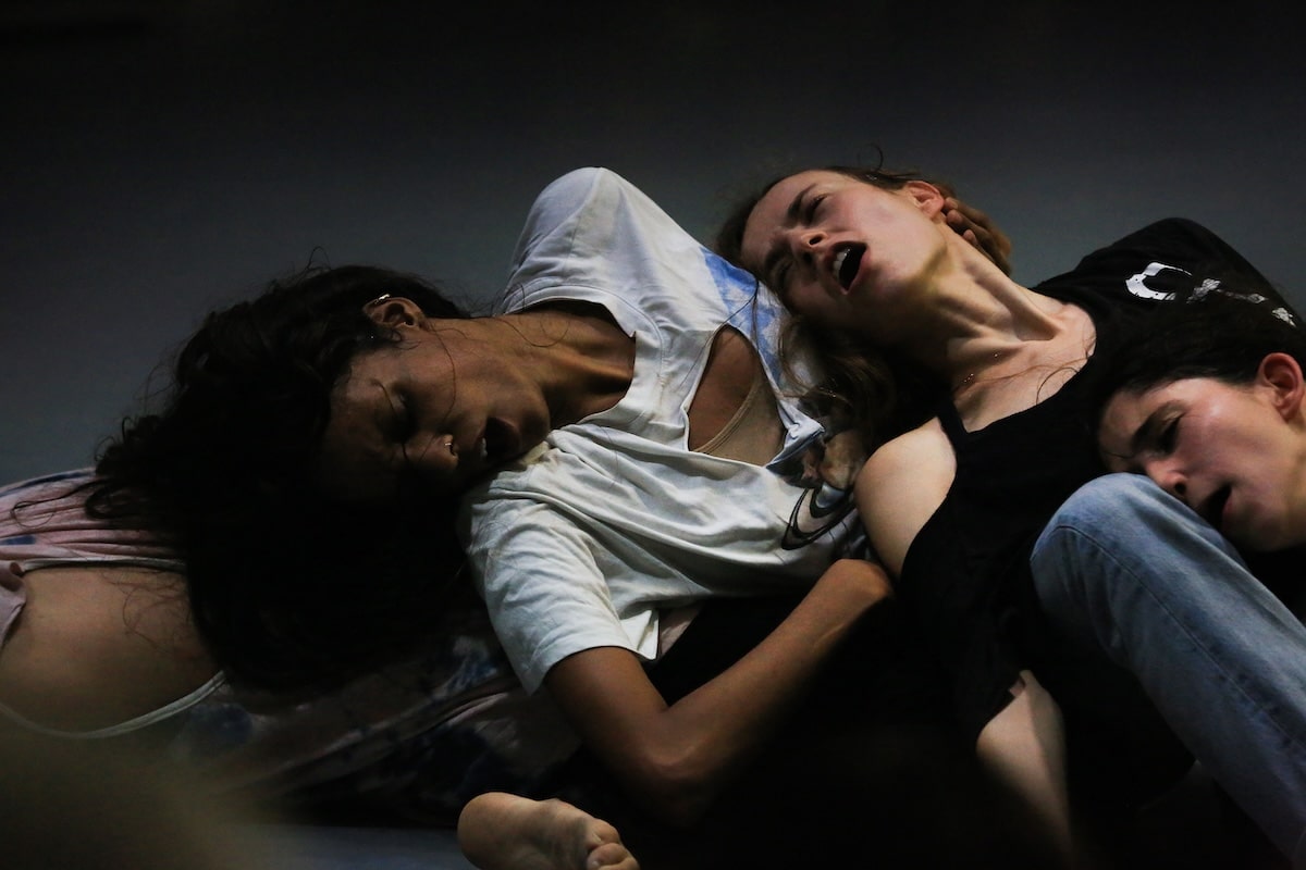 Practicing Empathy #1 is the first outcome of this exploration. It is conceived as a collective inquiry into support and shared courage, through which performers seek ways to be present for one another and respond to individual and collective expressions of emotion. Using physical formations, chants, and rhythms, the group experiments with how to hold space for one another while navigating the intensity of shared sensation.